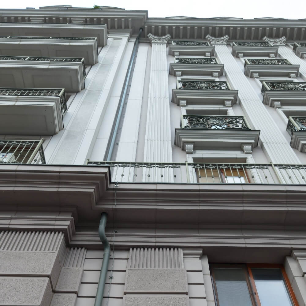 Beton zbrojony włóknem szklanym to także wyjątkowo wdzięczny materiał do prac konserwatorskich, ponieważ wykonać z niego można gzymsy, balustrady czy obramowania okien.